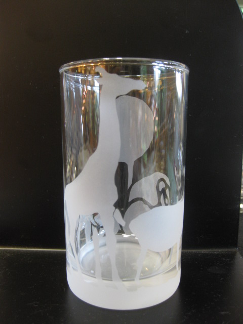 サンドブラストガラス彫刻(ガラスに圧縮空気で砂を吹付けて磨りガラス状にする)